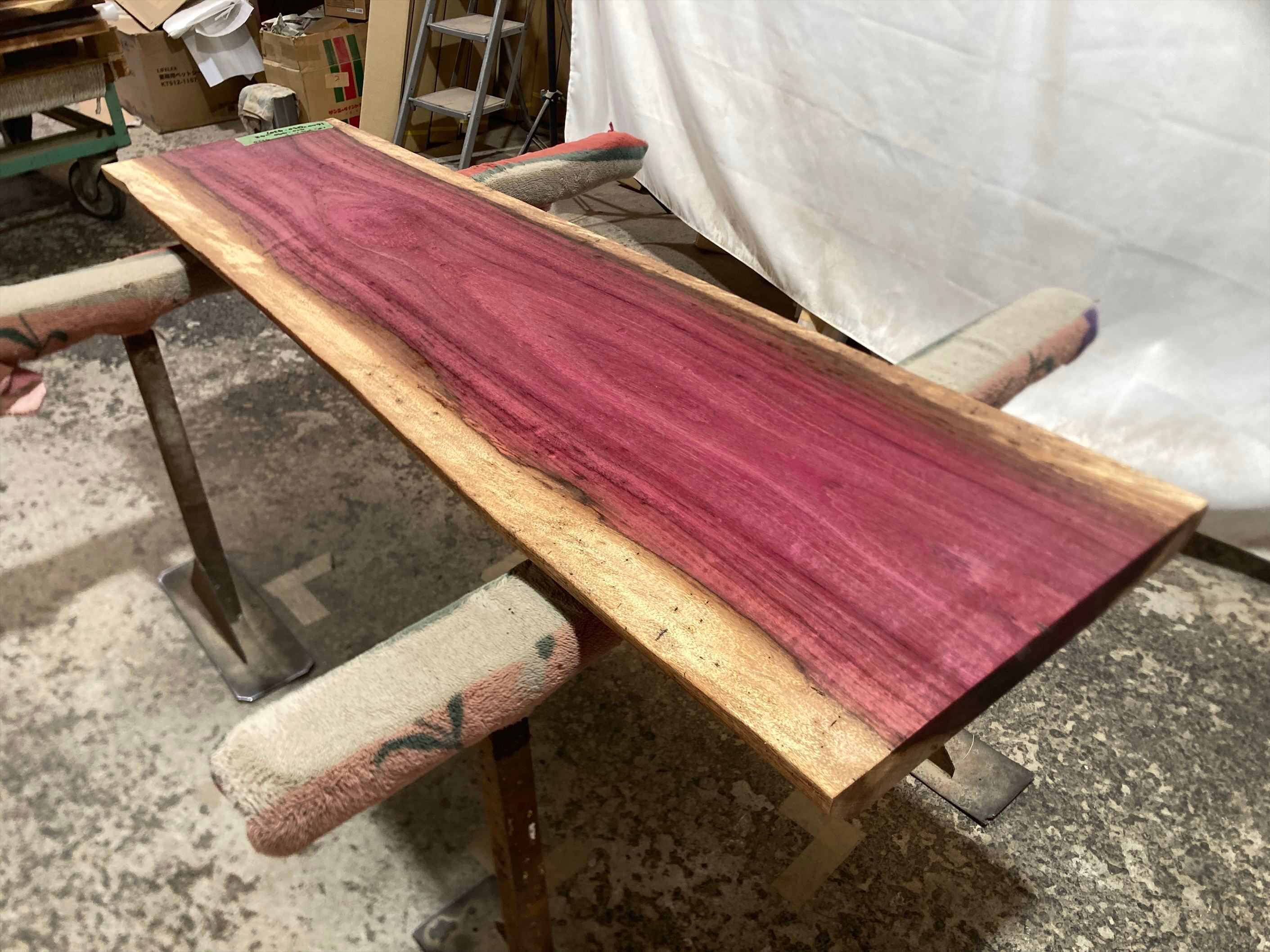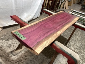 パープルハート9220 一枚板無垢 乾燥材 1600x410‐490x48mm カウンター センターテーブル 棚 テレビ台 花台 DIY 窓台 台