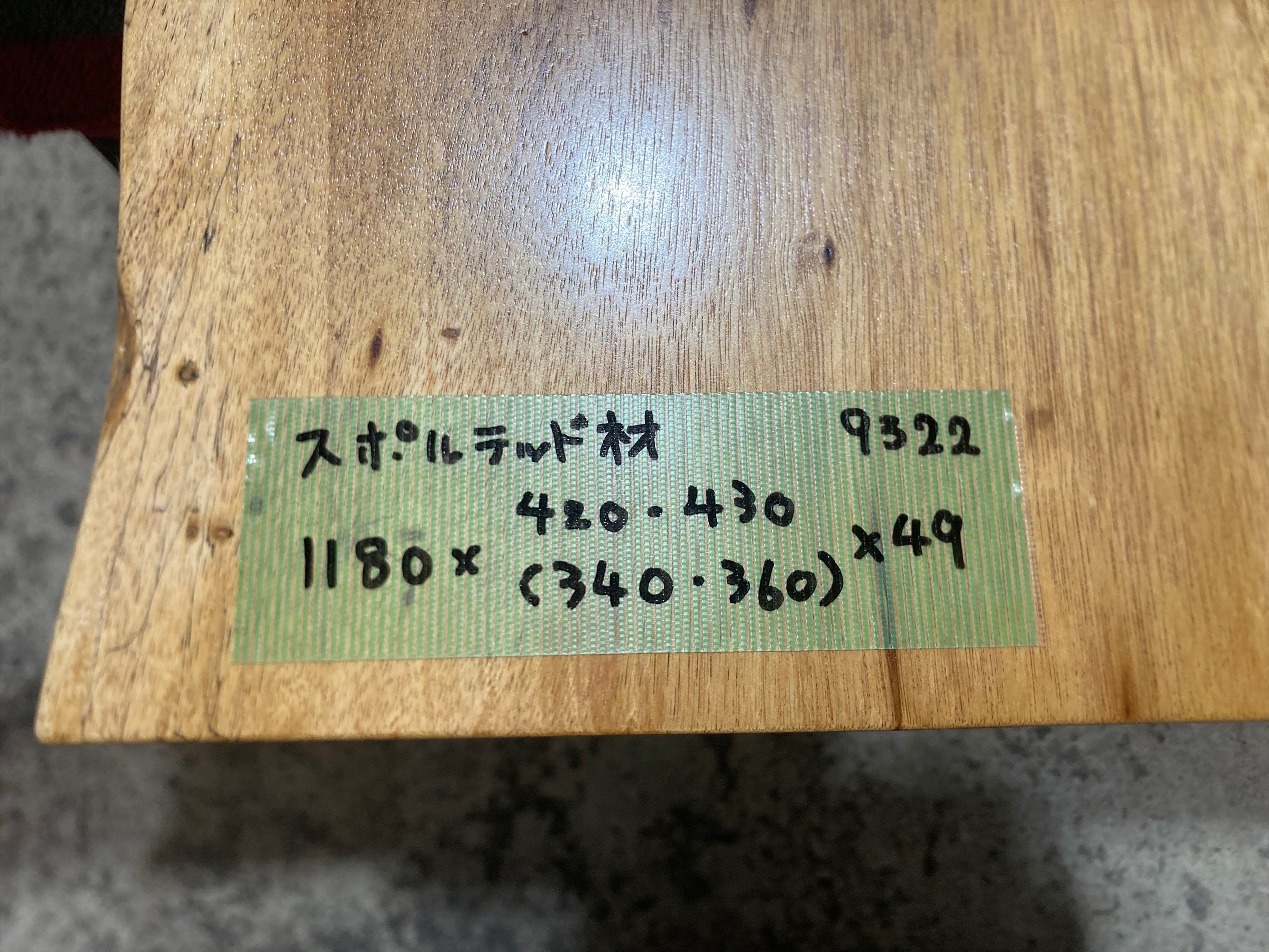 スポルテッド材9322 一枚板無垢 乾燥材 1180x420-430x49㎜ カウンター テーブル ローテーブル 窓台