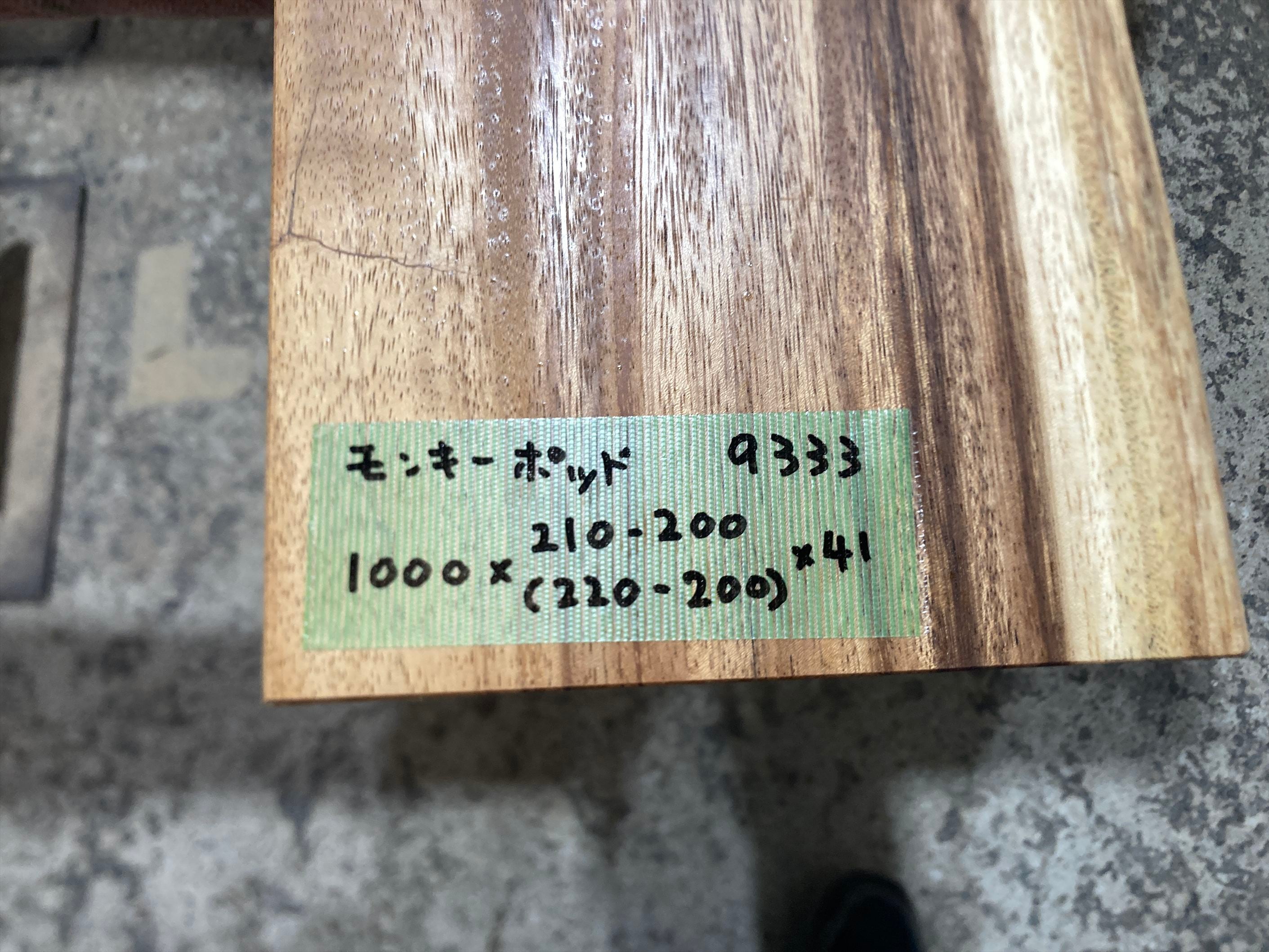 モンキーポッド9333 一枚板無垢 乾燥材 1000x210-200x41mm カウンター センターテーブル ダイニングテーブル
