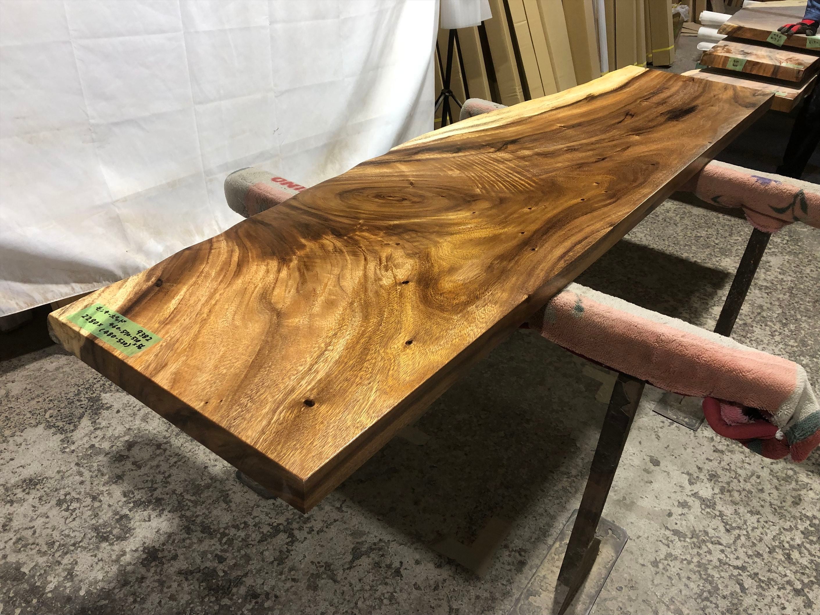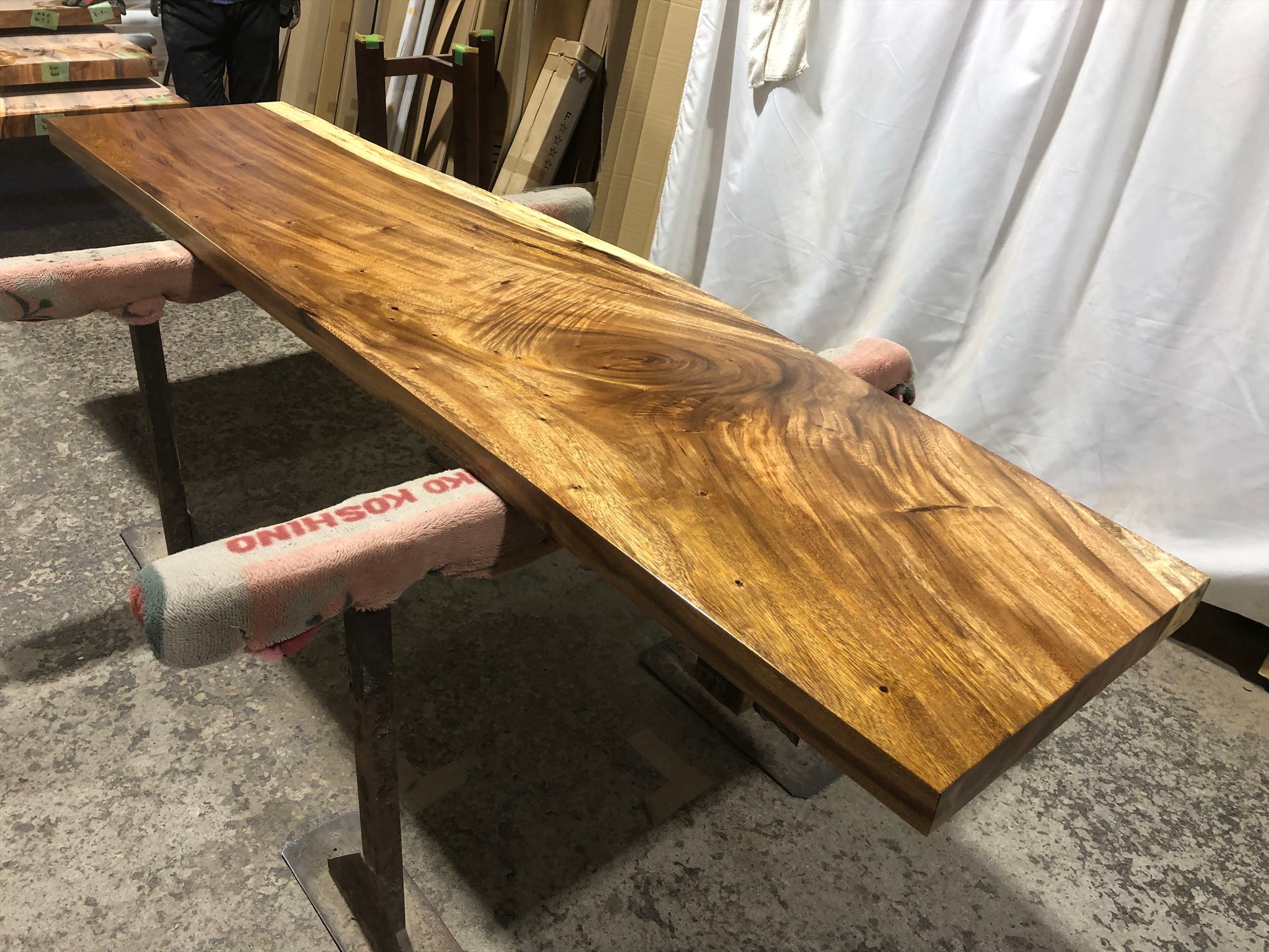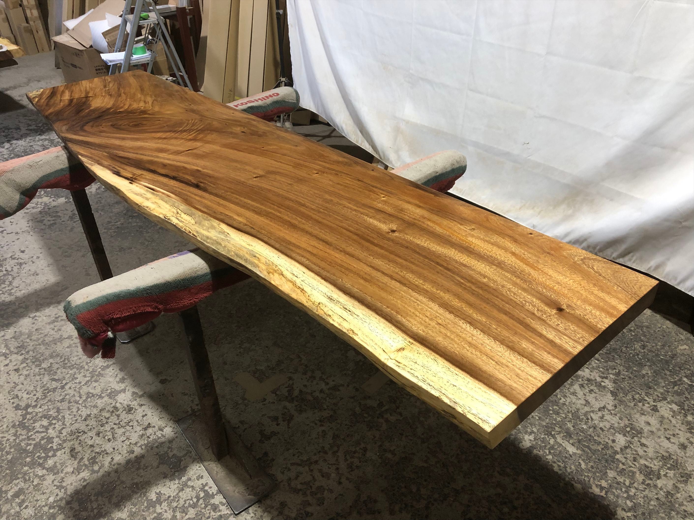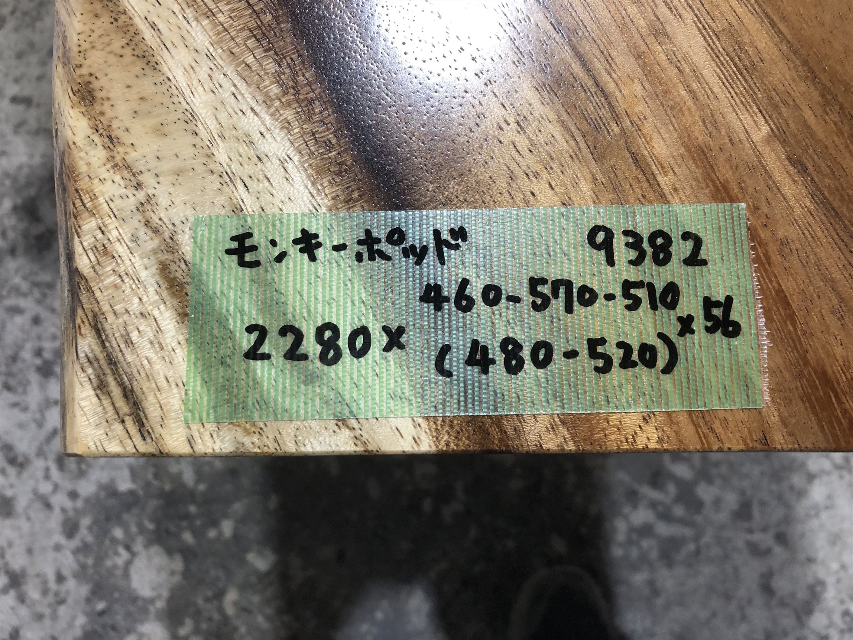 モンキーポッド9382 一枚板無垢 乾燥材 2280x460-570-510x55mm カウンター センターテーブル ダイニングテーブル