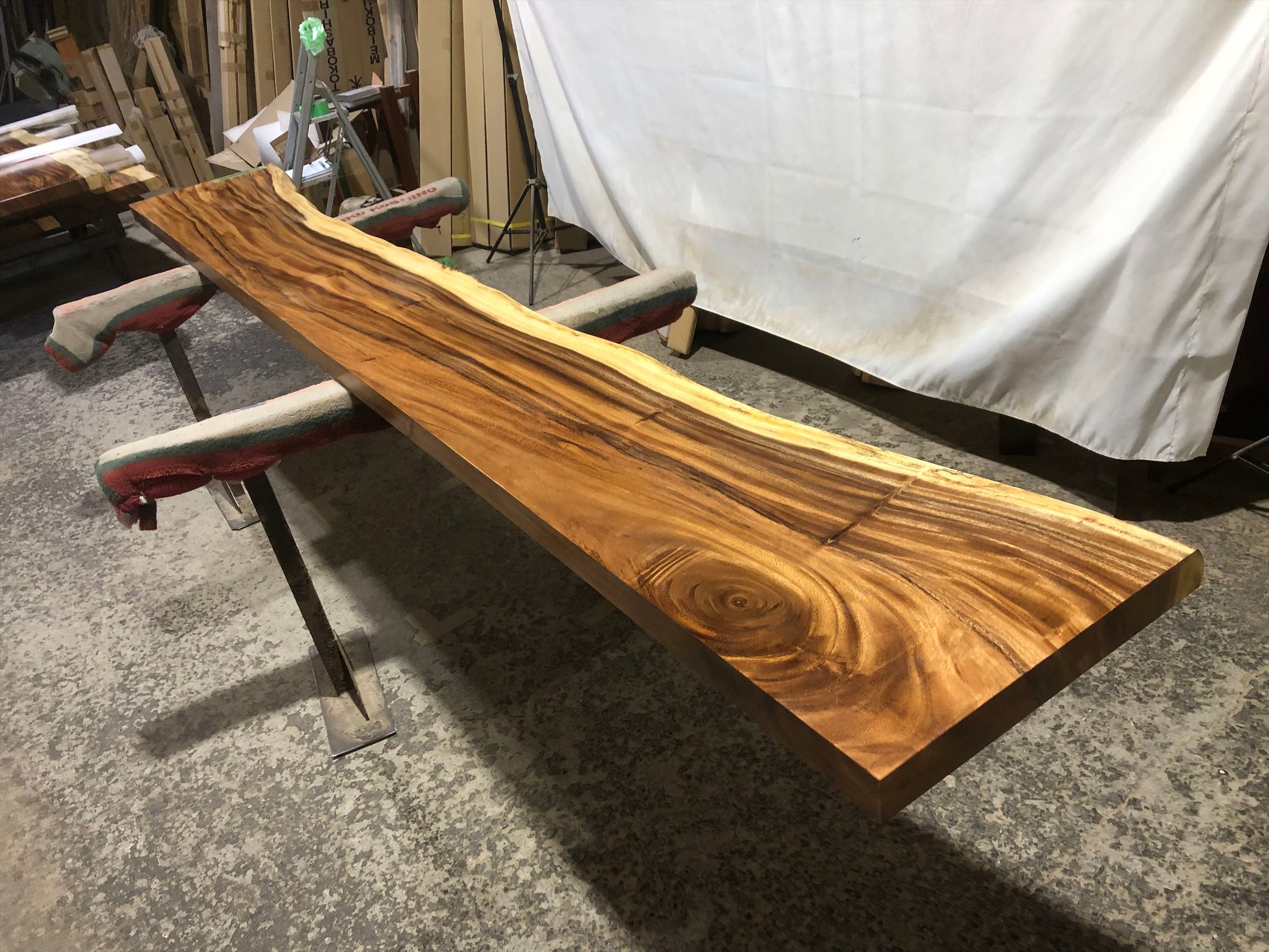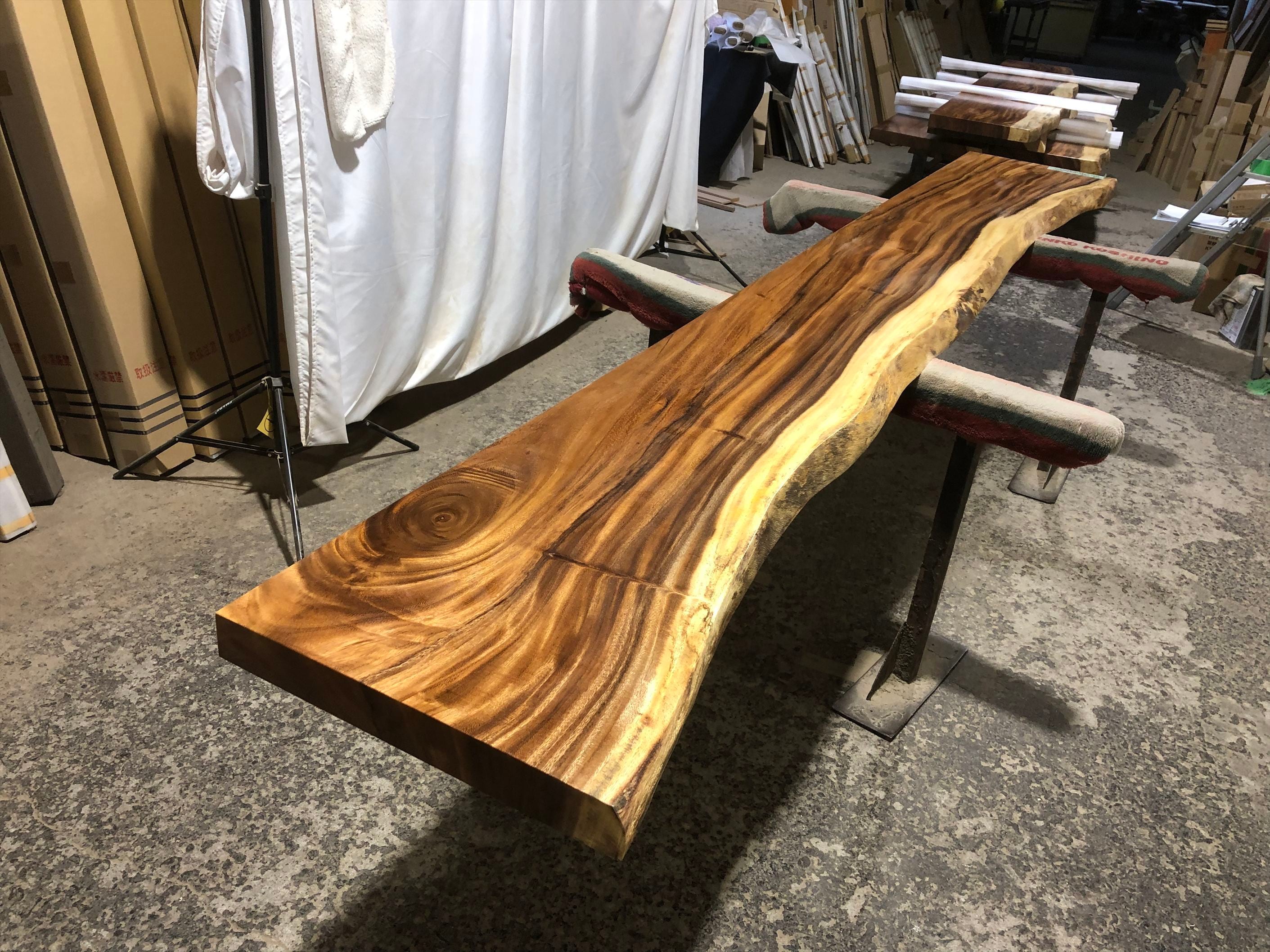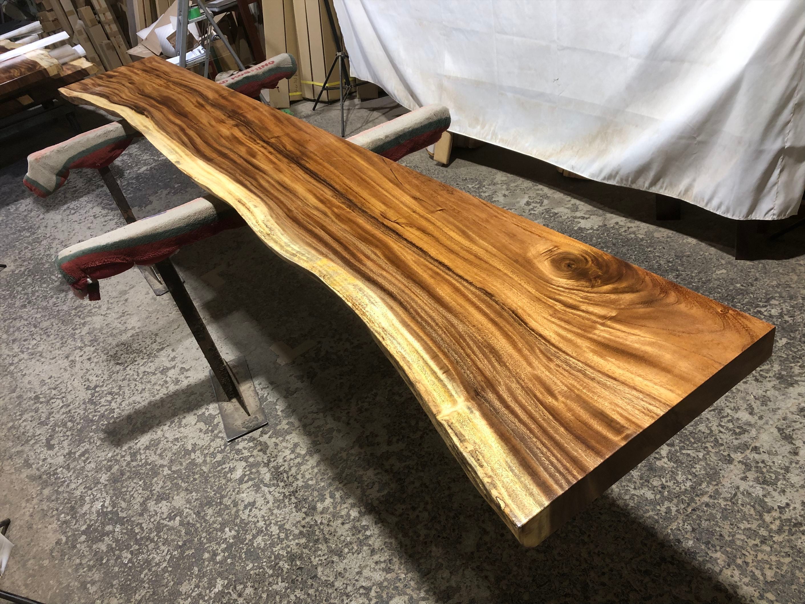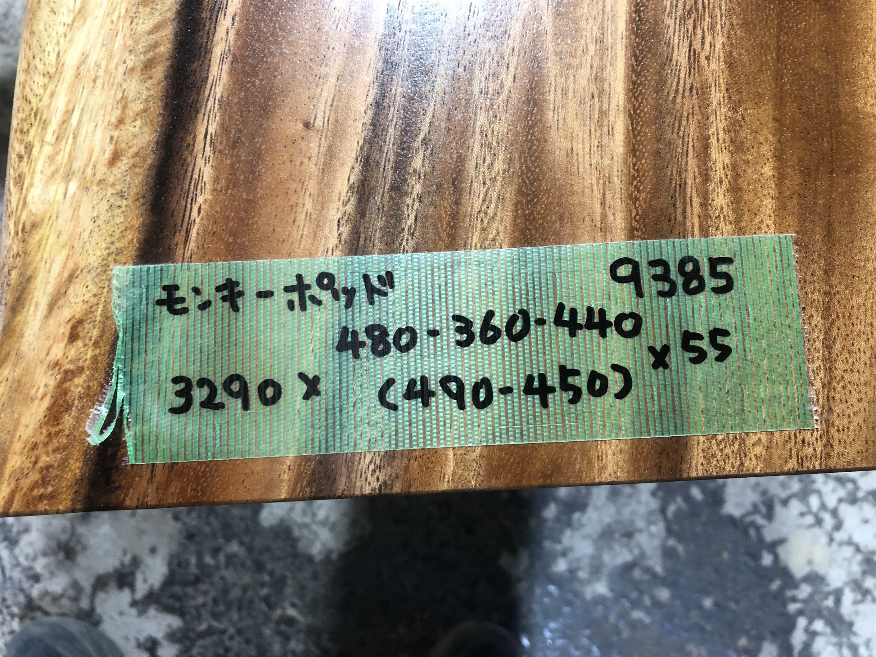 モンキーポッド9385 一枚板無垢 乾燥材 3290x480-360-440x55mm カウンター センターテーブル ダイニングテーブル