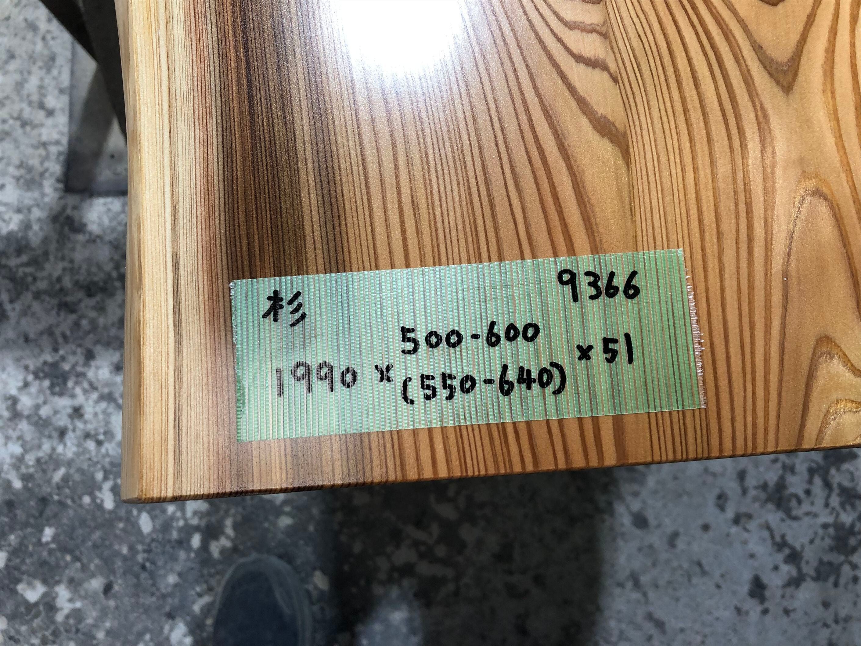 杉9366 一枚板無垢 1990x500-600x51mm 乾燥材 センターテーブル カウンター ウレタン塗装 セラウッド塗装 テーブル板