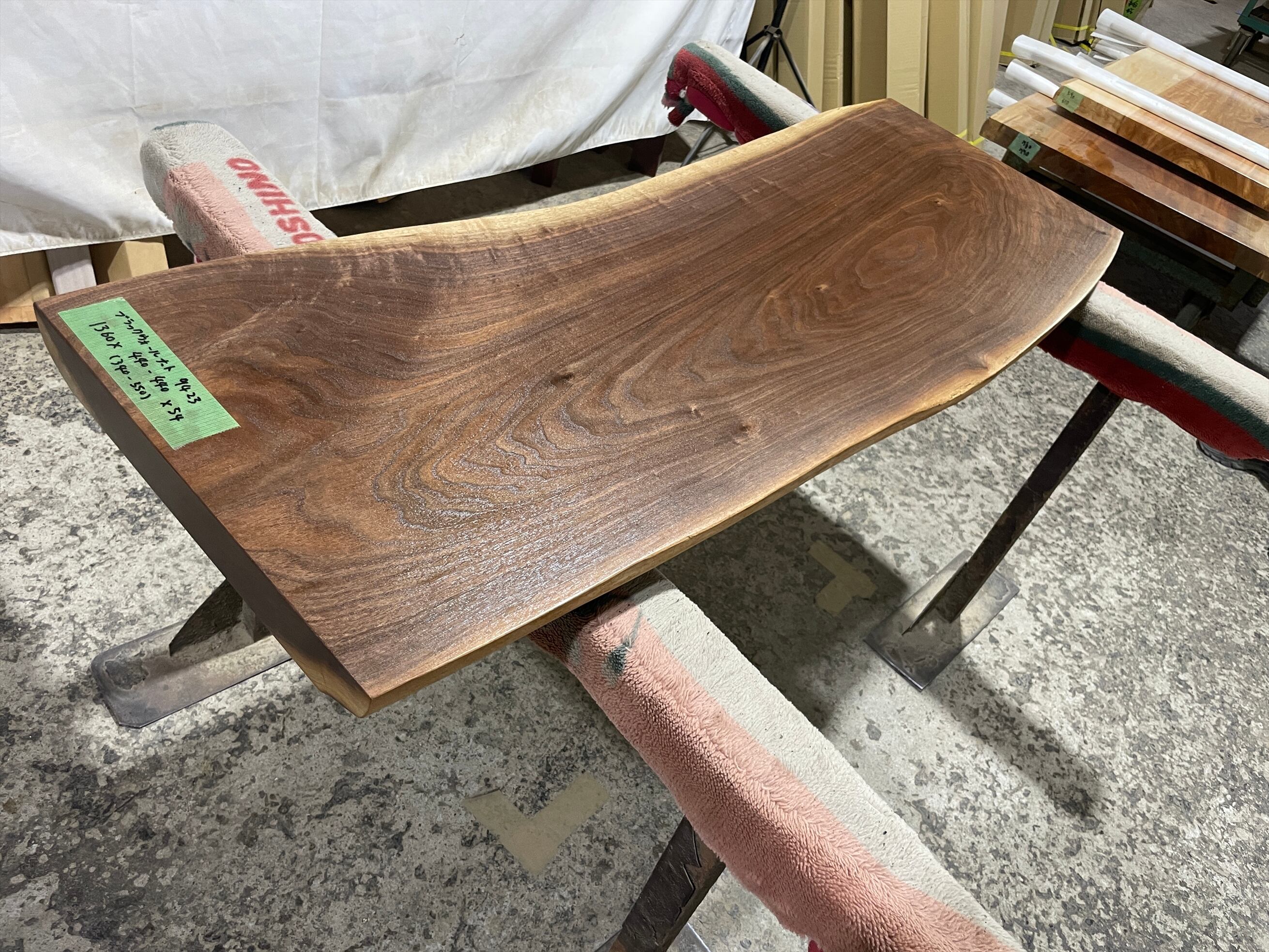 ブラックウォールナット9423 一枚板無垢 乾燥材 1360x440-440x54mm カウンター ローテーブル センターテーブル ダイニングテーブル