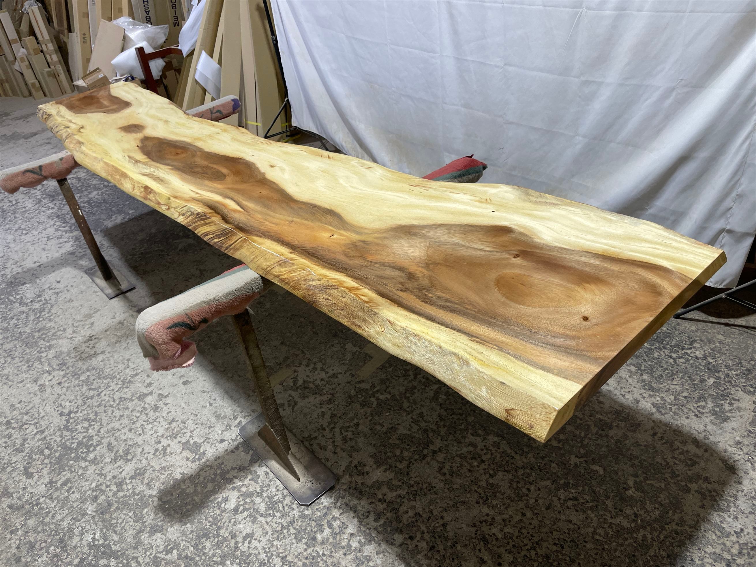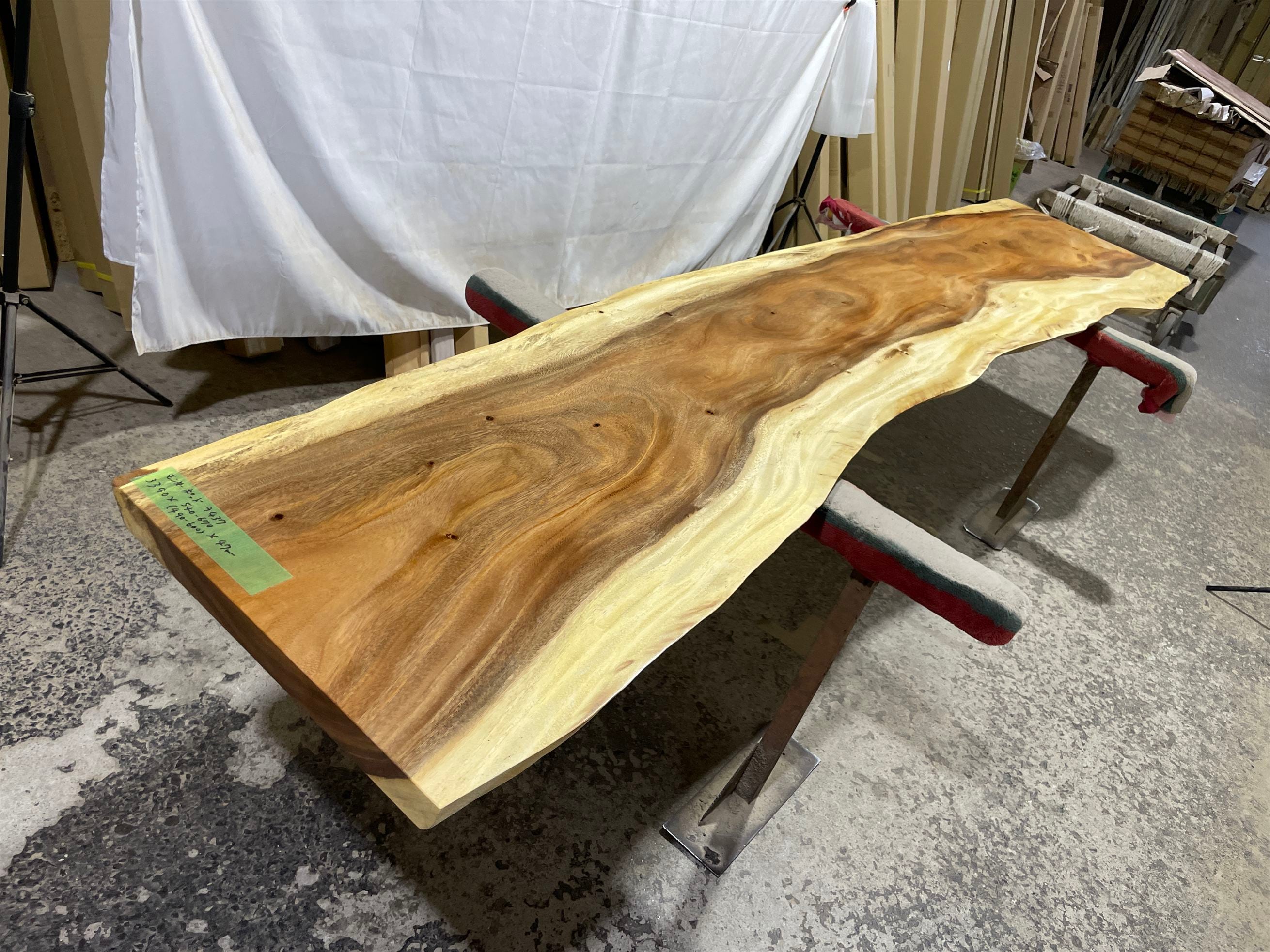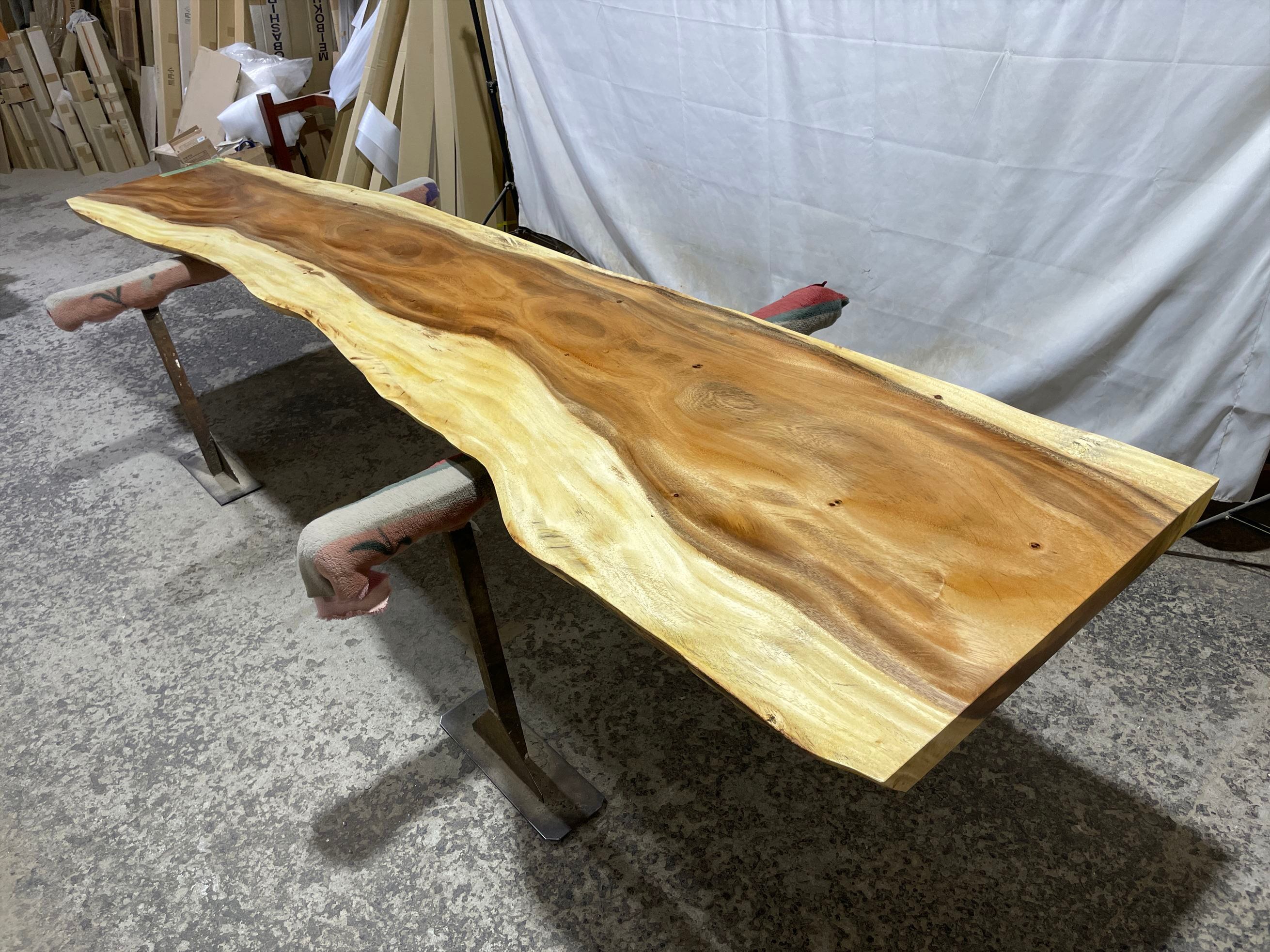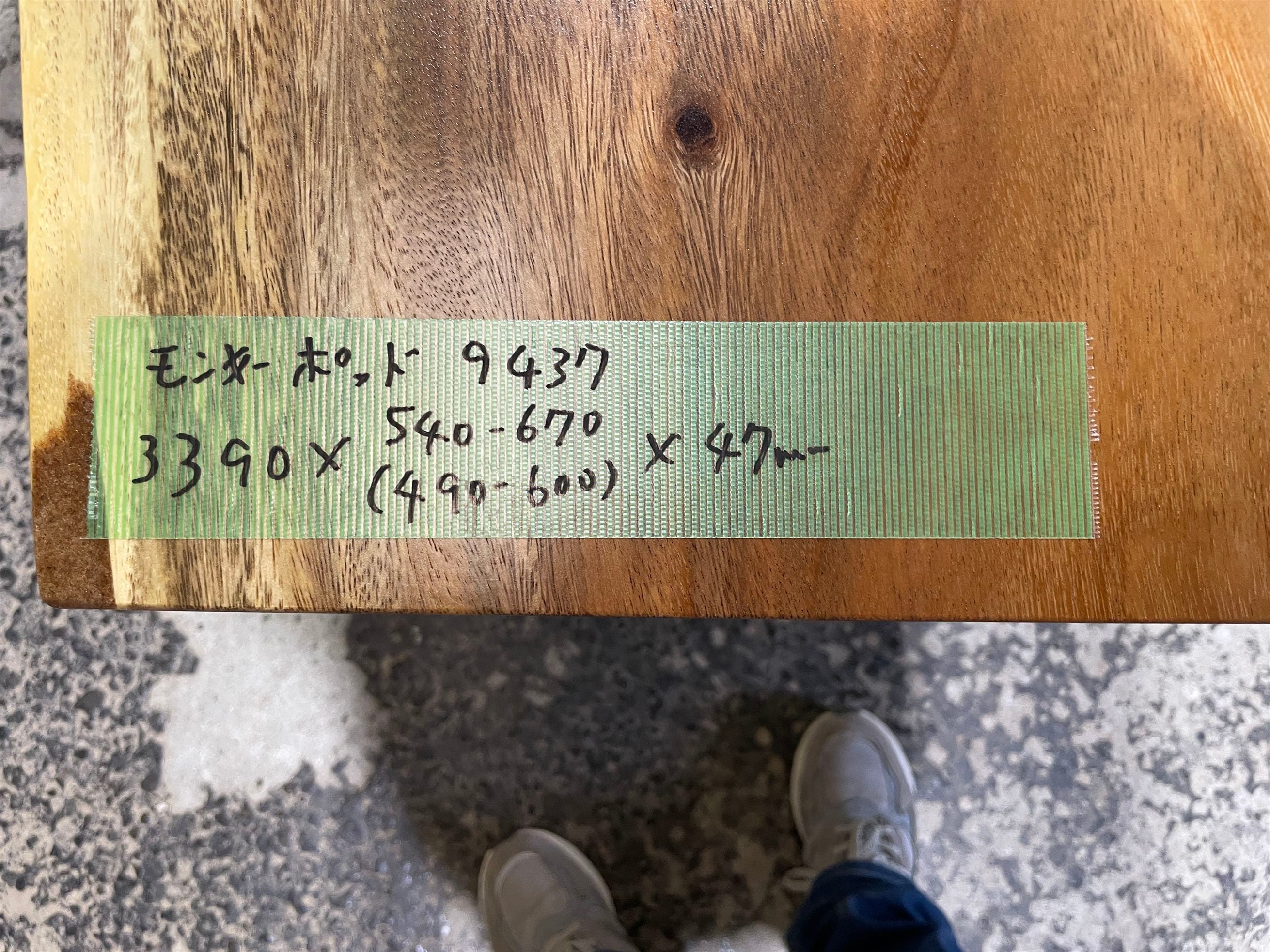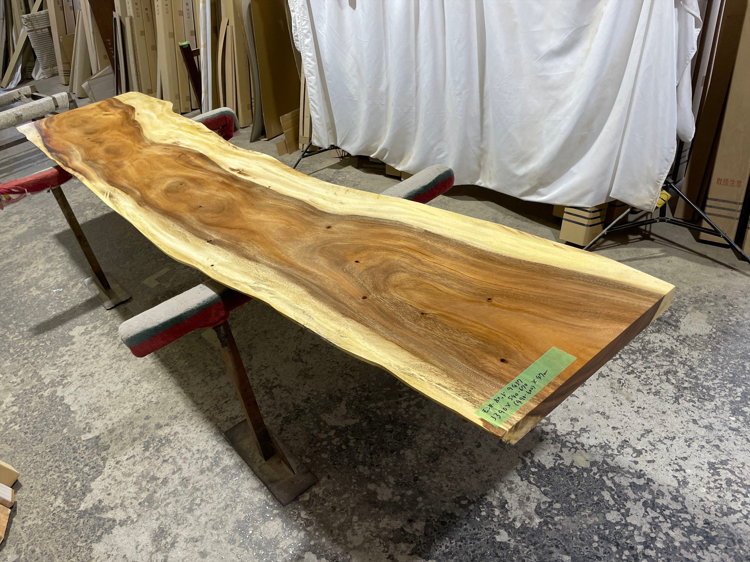 モンキーポッド9437 一枚板無垢 乾燥材 3390x540-670x47mm カウンター センターテーブル ダイニングテーブル
