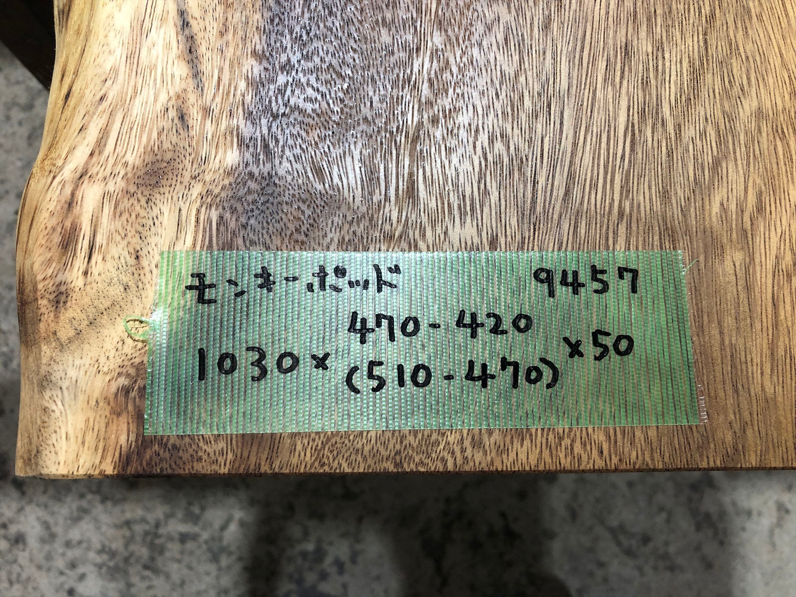 モンキーポッド9457 一枚板無垢 乾燥材 1030x470-420x50mm カウンター センターテーブル ダイニングテーブル