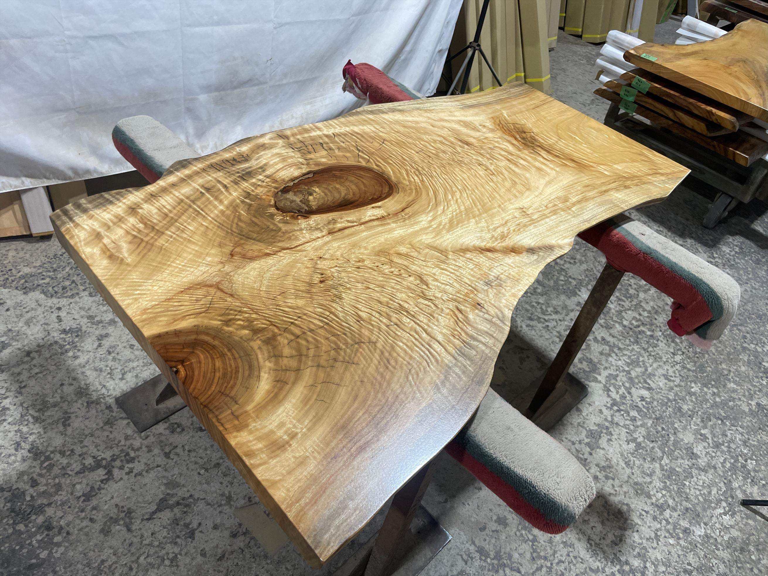 幅広の一枚板が取れる原木でまだ値段が届く楠の人気が非常に高くなっております。