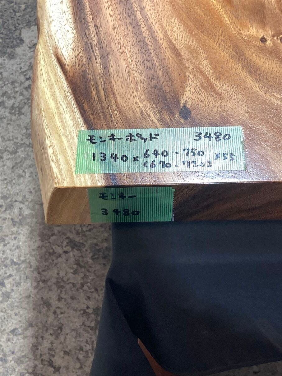 モンキーポッド3480 一枚板無垢 乾燥材 1340x640-750x55mm カウンター センターテーブル ダイニングテーブル