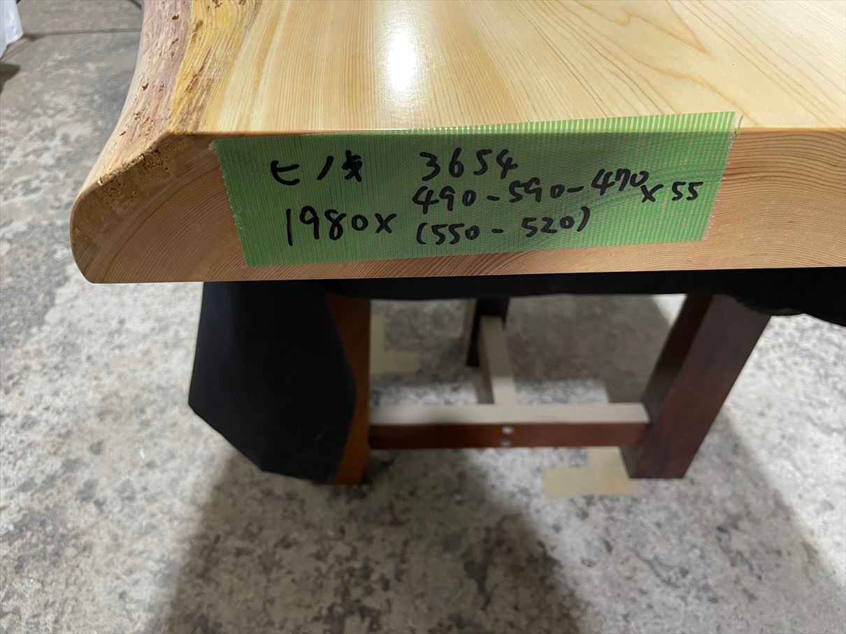 木曾桧 桧3654 一枚板無垢 乾燥材 1980x490-590-470x55mm ヒノキ 檜 センターテーブル カウンターテーブル ウレタン塗装