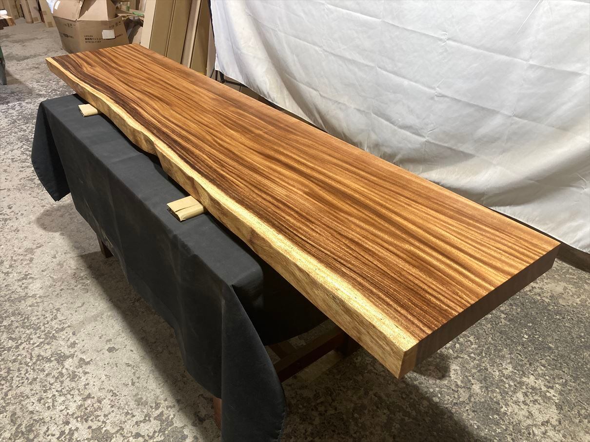 モンキーポッド3801 一枚板無垢 乾燥材 2040x400-430x55mm カウンター センターテーブル ダイニングテーブル テレビ