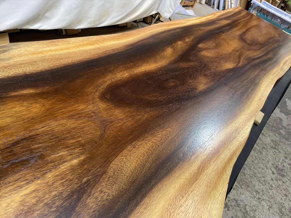 モンキーポッド3840 一枚板無垢 乾燥材 2430x680-540-630x60mm カウンター センターテーブル ダイニングテーブ